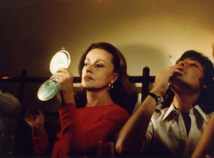 于是,在这出密闭空间中的寓言里,一个年轻杀手爱上了自己的目标,死亡的召唤不再制造悬念,而是生成一个悼念的仪式(memento mori)。这部影片所记录的,是一层层沉积下来的回忆与梦境的聚合物,一种风化的表面(或曰“一层胶片”),令镜面变得混浊,花束褪色,地板作响。16毫米胶片的乳剂仿佛令“时间”本身具象可见,以其质地斑驳的明暗构造出一种真实的持续感。