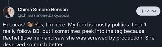 25年的BB历史,从未见过因为一个twist,粉丝群体和往届选手如此意见一致的宣布要抵制节目本身,节目组不敢开lfs,更新就被骂到删帖。