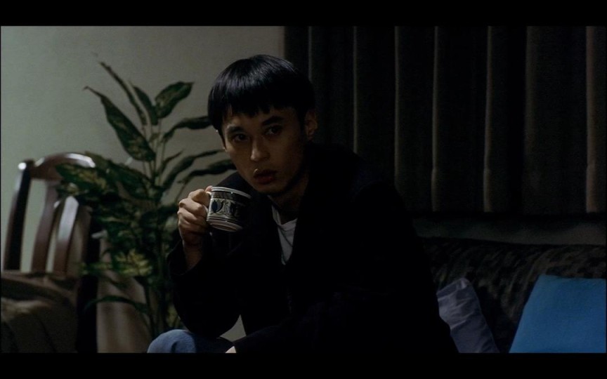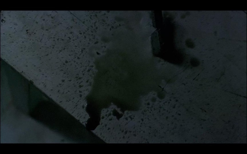 特写镜头的拍摄对象常常是一个物件,比如间宫点起的烟,满溢出水的洗手池,甚至是天花板漏水在桌面上形成的污渍。