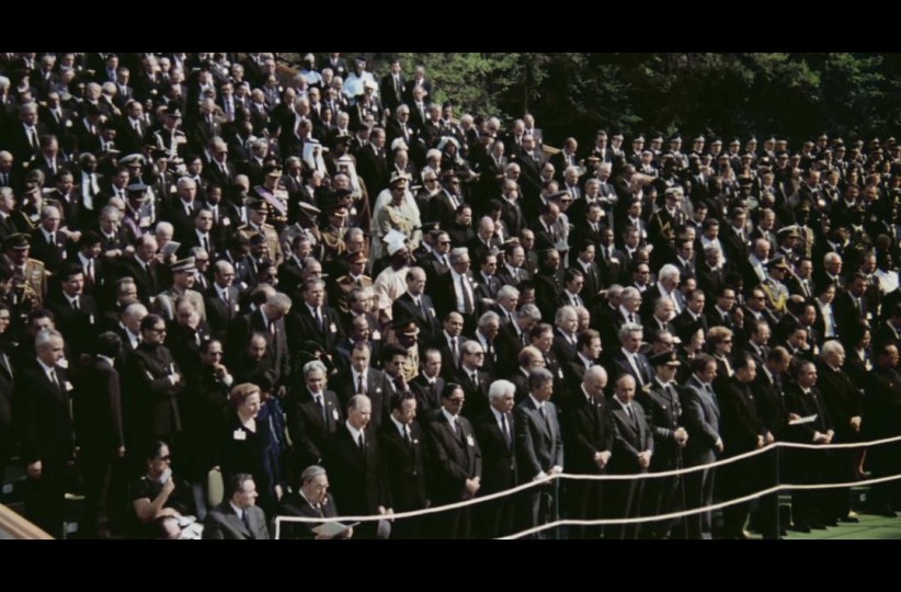 左下角,勃列日涅夫和撒切尔,全图是各国来参加吊唁的代表,规模空前。当时联合国成员国共154个,有128个国家派代表团出席。